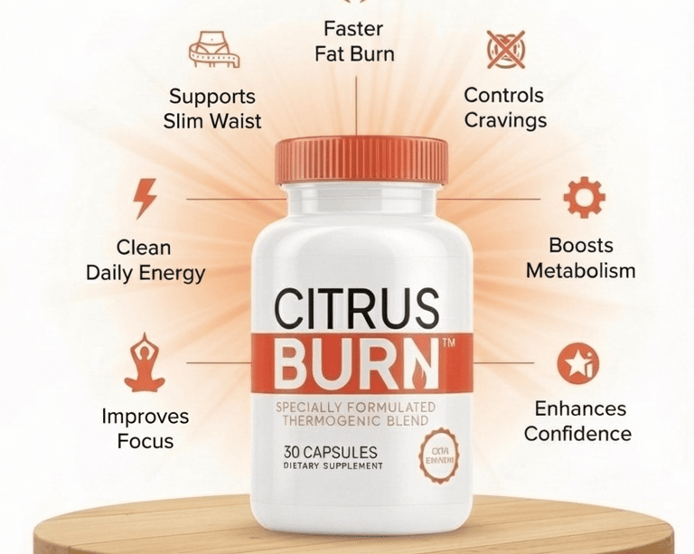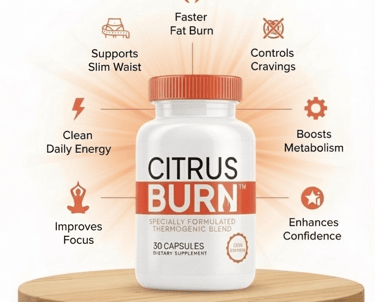 Citrus Burn Australia is a metabolism support supplement designed to help boost energy, enhance fat burning, and support healthy weight management. Made with citrus-based natural ingredients, Citrus Burn Australia works to improve metabolic function and reduce stubborn fat when combined with a balanced diet and active lifestyle. Citrus Burn supports appetite control and sustained energy levels, making it suitable for men and women in Australia who are looking for a natural way to support metabolism and overall wellness safely and effectively.